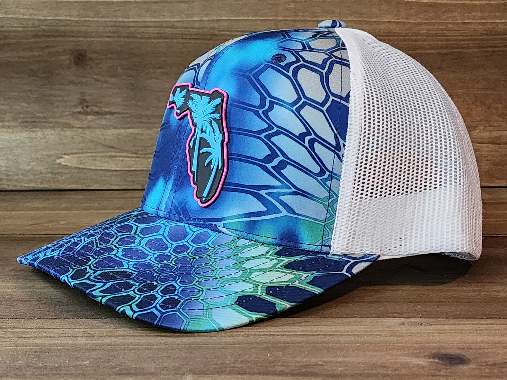 This Kryptek camo trucker pairs rugged edge with neon Miami Vice branding. It’s built for heat, hustle, and weekends outside. The bold PVC patch pops against the Kryptek background, while the mesh back keeps airflow high and sweat low. Whether you’re working the boat or walking the boardwalk, this one makes a statement.